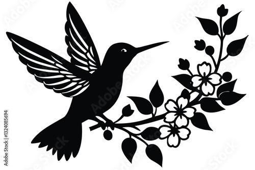 hummingbird silhouette, bird with flower, hovering bird art, hummingbird vector, bird flower silhouette, hummingbird near flower, bird silhouette vector, hummingbird clipart