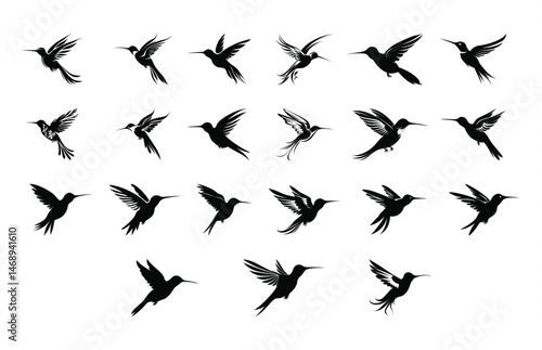 Hummingbird Silhouette Clipart Set, Humming Birds Vector Silhouettes bundle