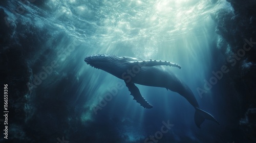 Humpback whale underwater in Caribbean