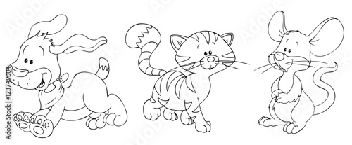 Hund, Katze und Maus mit Winterkleidung