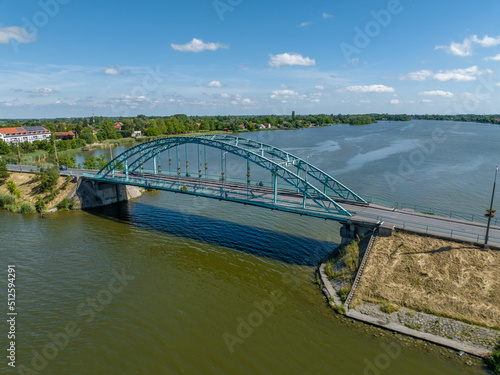 Hungary - Rackeve (Ráckeve) bridge at sunny time from drone view