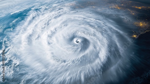 Hurricane forms over ocean. Powerful storm system creates swirling clouds. Intense winds, flooding threaten coastal areas. Rising sea temperatures cause stronger storms. Urgent relief efforts needed