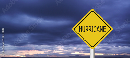 Hurricane Idalia warning sign against a powerful stormy background with copy space. Dirty and angled sign with cyclonic winds add to the drama.hurricane season sign on cloudy background