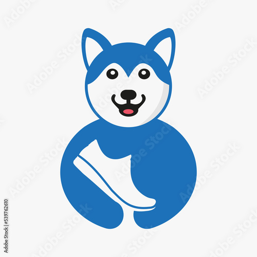 Husky Shoe Logo Negative Space Concept Vector Template. Husky Holding Shoe Symbol