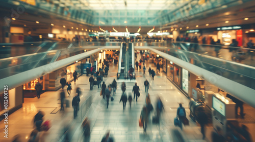 hustle and bustle at an airport, visualization of movement through blurring, created with generative AI technology
