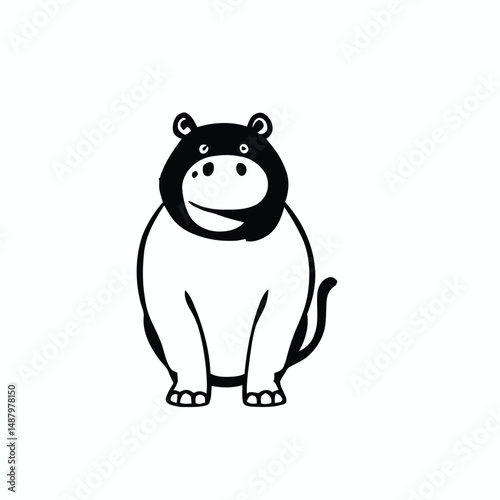 Hybrid Hippo-Monkey Silhouette, Unique Animal Fusion in Minimalist Black and White Design, Creative Concept Illustration, Vector Art