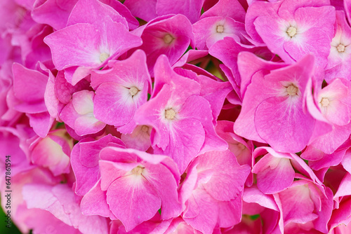 Hydrangea garden. Hydrangea flowers - Hydrangea macrophylla - Beautiful bush in a town garden. Hydrangea are blooming in spring and summer.