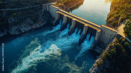 Hydroelectric Dam with Flowing River