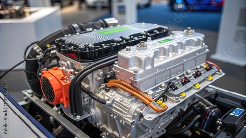 hydrogen fuel cell technology clean transport green solution Concept. Engine close-up showcasing detailed mechanical components.