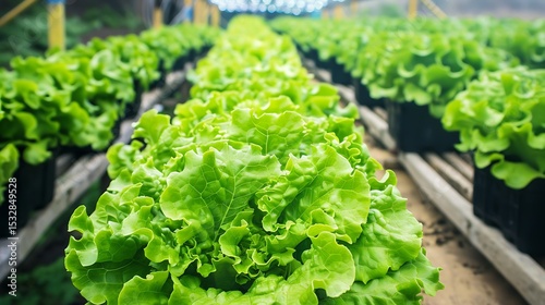 Hydroponic lettuce farm with LED grow lights and clean rows.