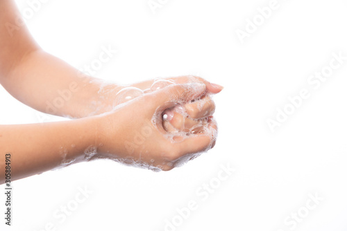 Hygiene. Cleaning Hands. Washing hands with soap bubbles