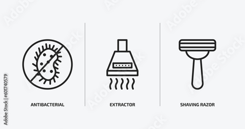 hygiene outline icons set. hygiene icons such as antibacterial, extractor, shaving razor vector. can be used web and mobile.