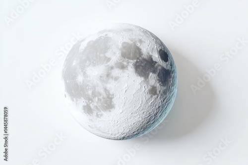 Hyper-realistic 3D moon icon designed with minimalist style isolated on a white background