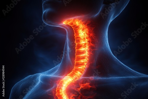 Hyper-realistic Anatomical Illustration of Human Esophagus in Bright Orange with Soft Blue Lighting