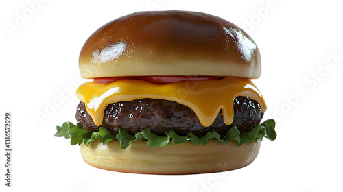 Hyper-Realistic Cheeseburger – Juicy Cut-Out Burger on Transparent Background