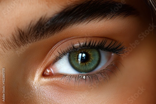 Hyper-realistic image of a person with a delicate septum ring, highlighting intricate details of the nose and piercing