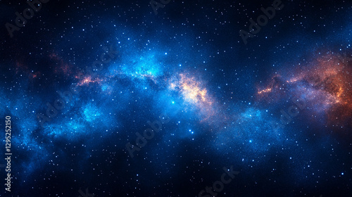 Hyperrealistic night sky with deep blue hues, glowing stars and wispy clouds, symbolizing mystery, infinite possibilities, and cosmic wonder in a modern artistic atmosphere