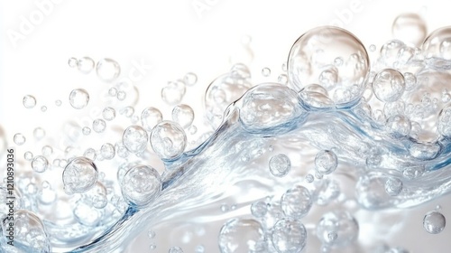 Hyper-realistic Water Bubbles on White Background Clear Float Sparkle Stream Fizz Underwater Effect