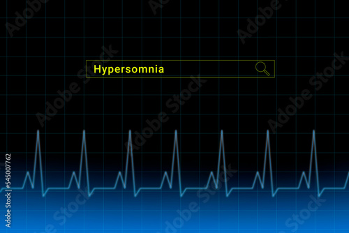Hypersomnia.Hypersomnia inscription in search bar. Illustration with titled Hypersomnia . Heartbeat line as a symbol of human disease.