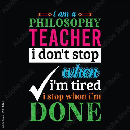 I am a Philosophy teacher i don’t stop when I’m tired i stop when i am done. Teacher t shirt design. Vector quote. For t shirt, typography, print, gift card, label sticker, flyers, mug design, POD.
