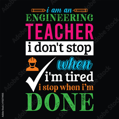 I am an Engineering Teacher i don’t stop when i am tired i stop when i am done. Vector Illustration quote. Science Teacher t shirt design. For t shirt lettering, typography, print, gift card, label