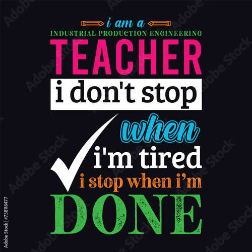 I am an Industrial Production Engineering Teacher i don’t stop when i am tired i stop when i am done. Vector Illustration quote. Science Teacher t shirt design. For t shirt lettering, typography, POD