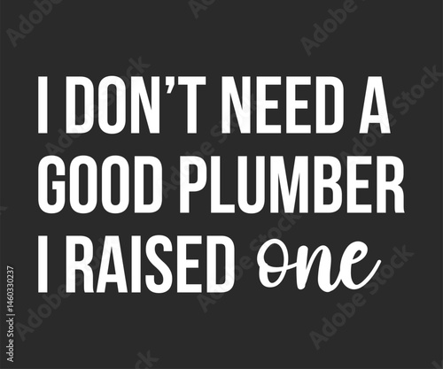 I do not need a good plumber i raised one, Humorous plumbing-themed T-shirt design featuring a witty quote, perfect for professional plumbers and DIY enthusiasts.