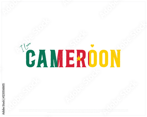I love CAMEROON, I love Cameroon typographic design with flag typography and heart on white background, Vector design of I love CAMEROON, CAMEROON National Day Design