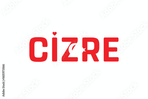 I Love CIZRE, Typographic Design of I Love CIZRE on a white background, Flag Typography of CIZRE with heart, Vector design of I Love Turkey