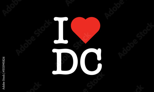 I Love DC Washington District Red Heart Bold Retro Black White Typography Vector for T-Shirts Stickers DIY Sublimation Crafts