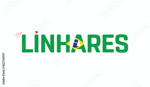 I Love Linhares, Typographic Design of I Love Linhares on a white background, Flag Typography of Linhares with heart, Vector design of I Love Brazil