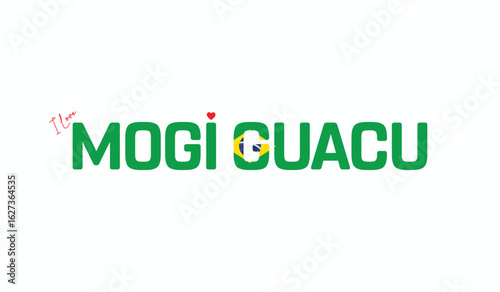 I Love Mogi Guacu, Typographic Design of I Love Mogi Guacu on a white background, Flag Typography of Mogi Guacu with heart, Vector design of I Love Brazil
