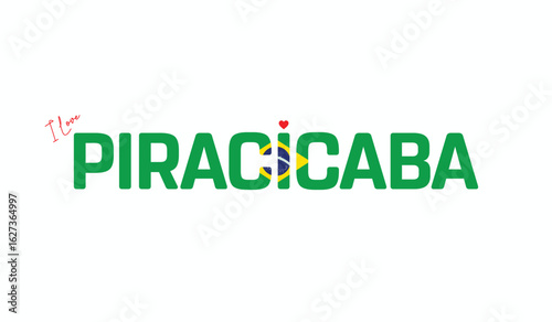 I Love Piracicaba, Typographic Design of I Love Piracicaba on a white background, Flag Typography of Piracicaba with heart, Vector design of I Love Brazil