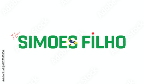 I Love SIMOES FILHO, Typographic Design of I Love SIMOES FILHO on a white background, Flag Typography of SIMOES FILHO with heart, Vector design of I Love Brazil