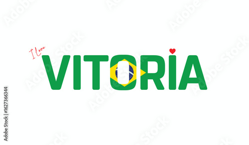 I Love VITORIA, Typographic Design of I Love VITORIA on a white background, Flag Typography of VITORIA with heart, Vector design of I Love Brazil