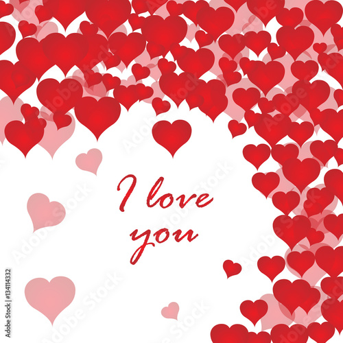 I love you postcard with many red hearts. Valentine's day. White background. Vector illustration