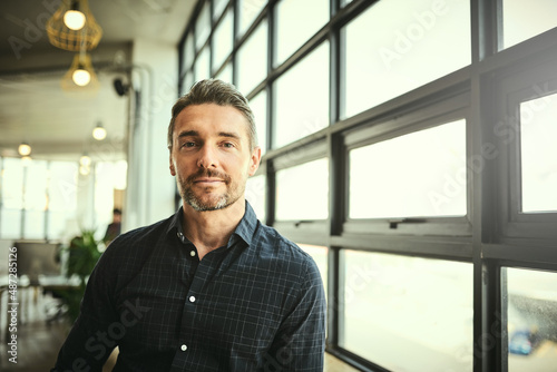 I was born to be creative. Cropped portrait of a handsome mature businessman standing in the office with his colleagues in the background.