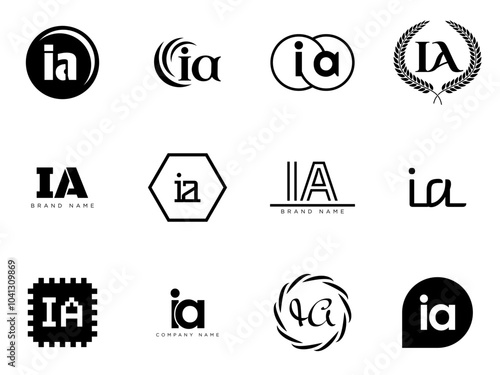 IA logo company template. Letter i and a logotype. Set different classic serif lettering and modern bold text with design elements. Initial font typography.