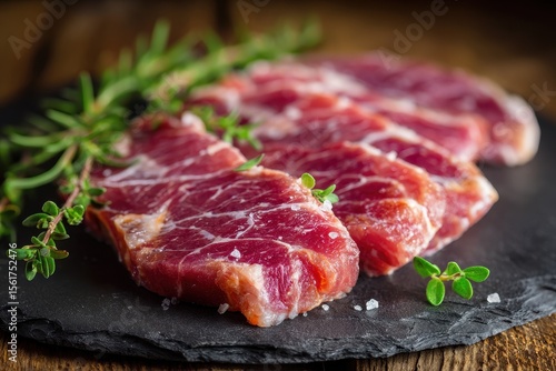 Iberico Pork. Raw Organic Meat from Iberian Pig with Acorn Diet, Closeup View