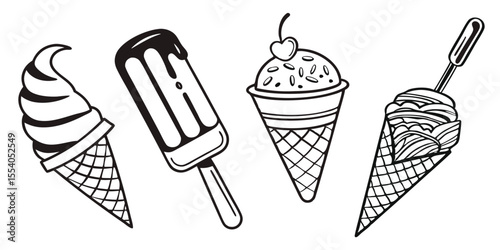 Ice Cream and Popsicle Line Icons – Black and White Vector Dessert Set
