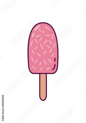 Ice cream element of set in flat design. In this whimsical illustration, a tantalizing pink popsicle becomes the focal point, offering sweet escape into a world of deliciousness. Vector illustration.