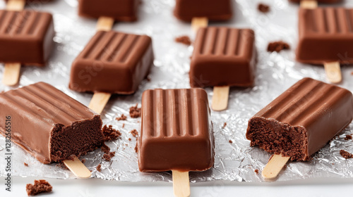 Ice cream factory, Close-up image of individually wrapped ice cream bars showcasing high fidelity details.
