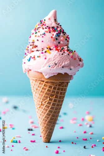 ice cream in a cone with colorful sprinkles
