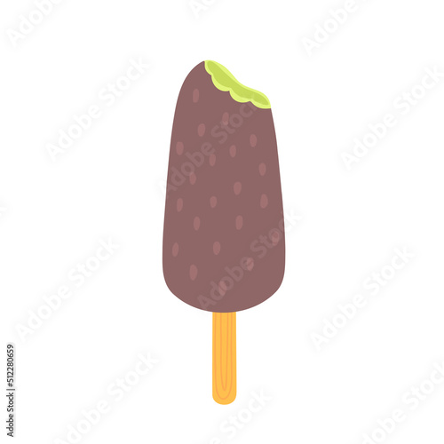 Ice cream in chocolate on stick. Vector Illustration for printing, backgrounds, covers, packaging, greeting cards, posters, stickers, textile and seasonal design. Isolated on white background.