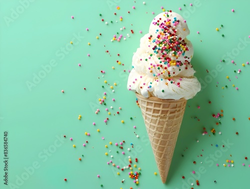 Ice Cream on Down Edge of Mint Green Background Evoking Carnival Atmosphere