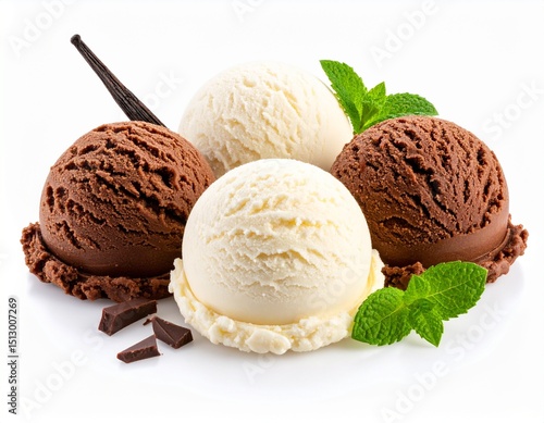 Ice cream scoops ball chocolate vanilla chocolate isolated on white background