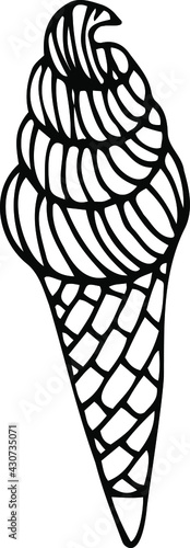 Ice cream with cream in a waffle cone. Hand-drawn vector illustration. Isolated object on a white background. Cafe, pastry shop, coffee shop.