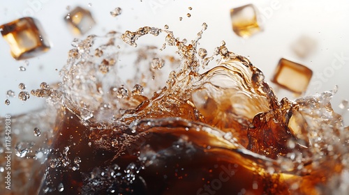 Ice Cubes Splashing in Cola: A Refreshing Burst