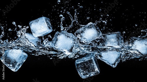 Ice cubes splashing into water. Perfect for illustrating refreshment, purity, and cold.