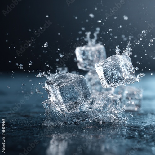 Ice cubes splashing water